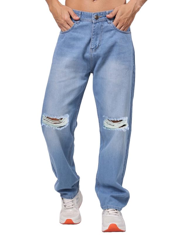 Brand: London Hills Color: Ice Blue Features: This Men Baggy jean come in five variant sizes 28-30-32-34-36, note: - Please refer to the size chart image for reference and choose a best fit for you. Unique product with flexible fabrication: Baggy Jeans, Comfortable Quality knitted with stylish Design, fits for summer wear. This Jeans are Loose Fit to provide you more comforts for any movements, Accurate to wear it in the Office, Casual Parties. Fit Description: Straight fit, Baggy Fit Jeans, Loose fit, Regular Fit Jeans Package Dimensions: 70x220x600