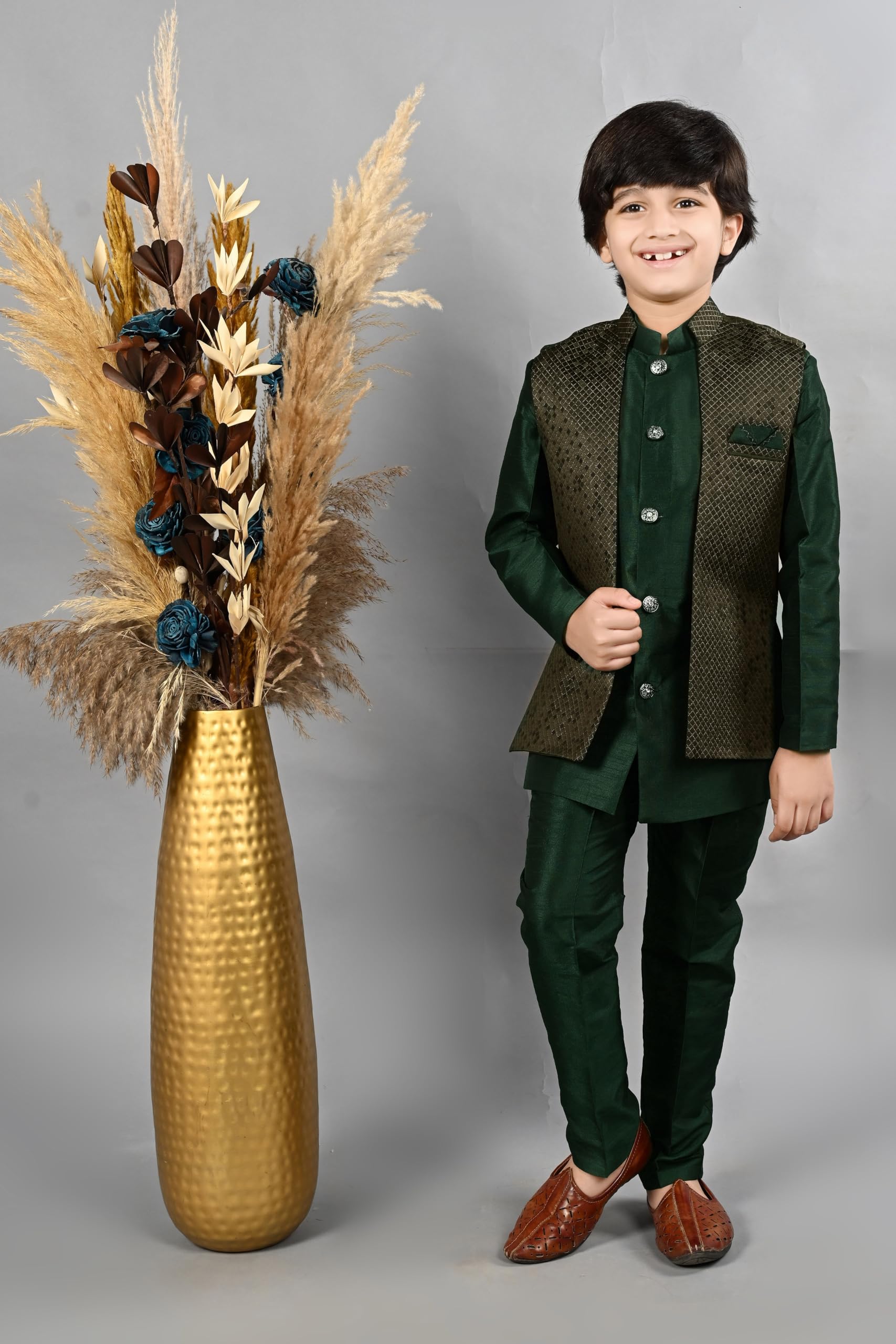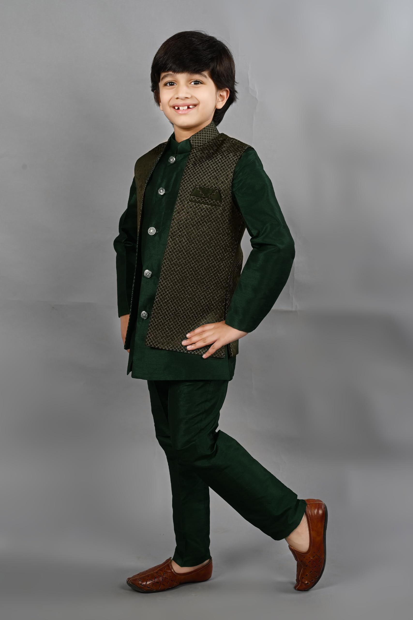 - From the house of “ahhaaaa” This traditional Kids Ethnic Silk Blend Waistcoat Kurta Pyjama Sherwani Set for Boys!
