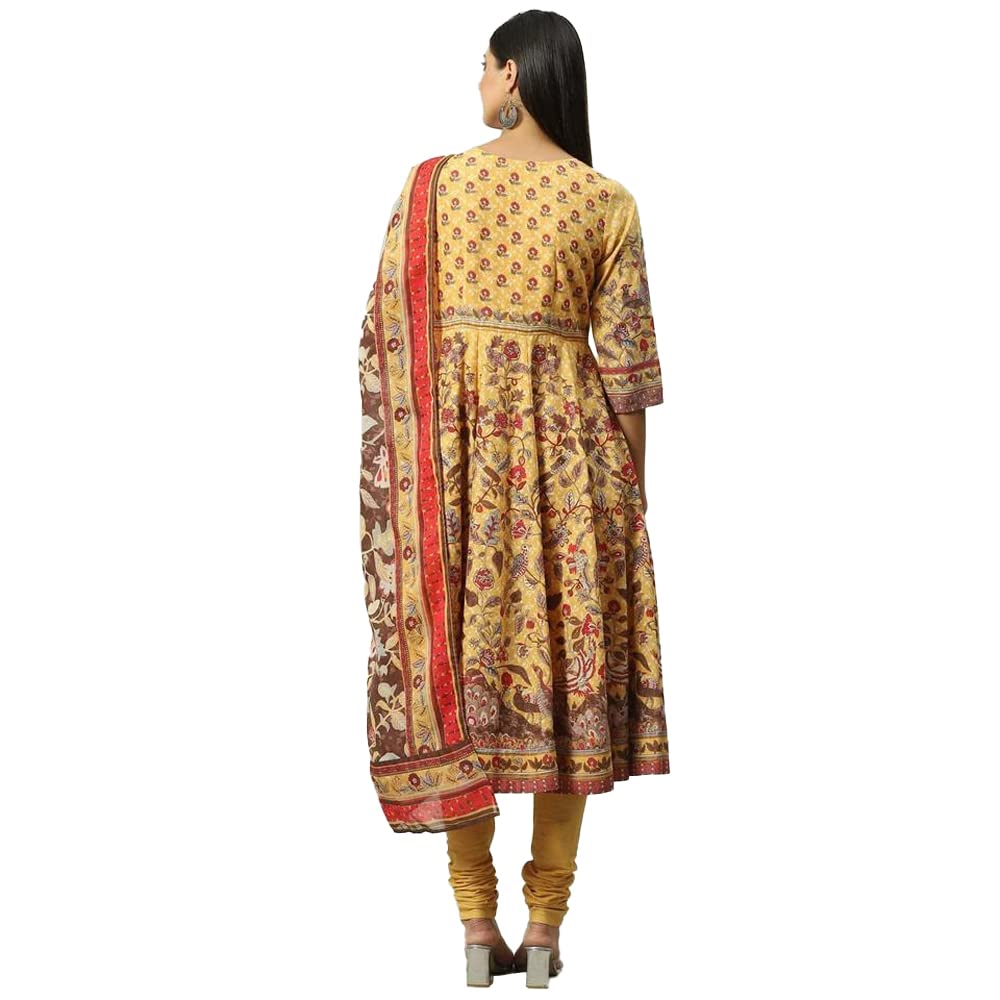 Biba Cotton Women Printed Fitted Salwar Kurta Dupatta(Skdkalamkar8356_Yellow_34)