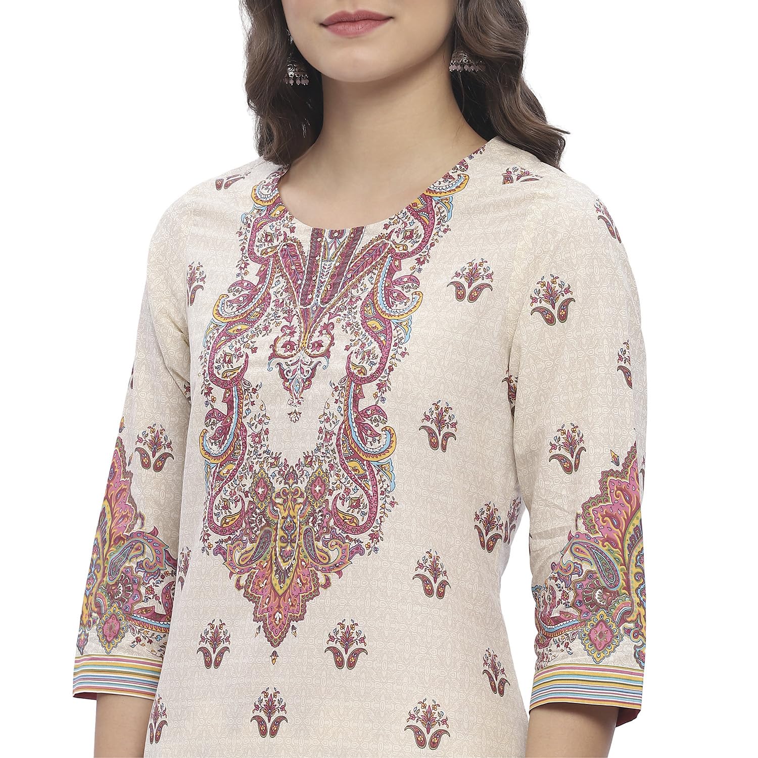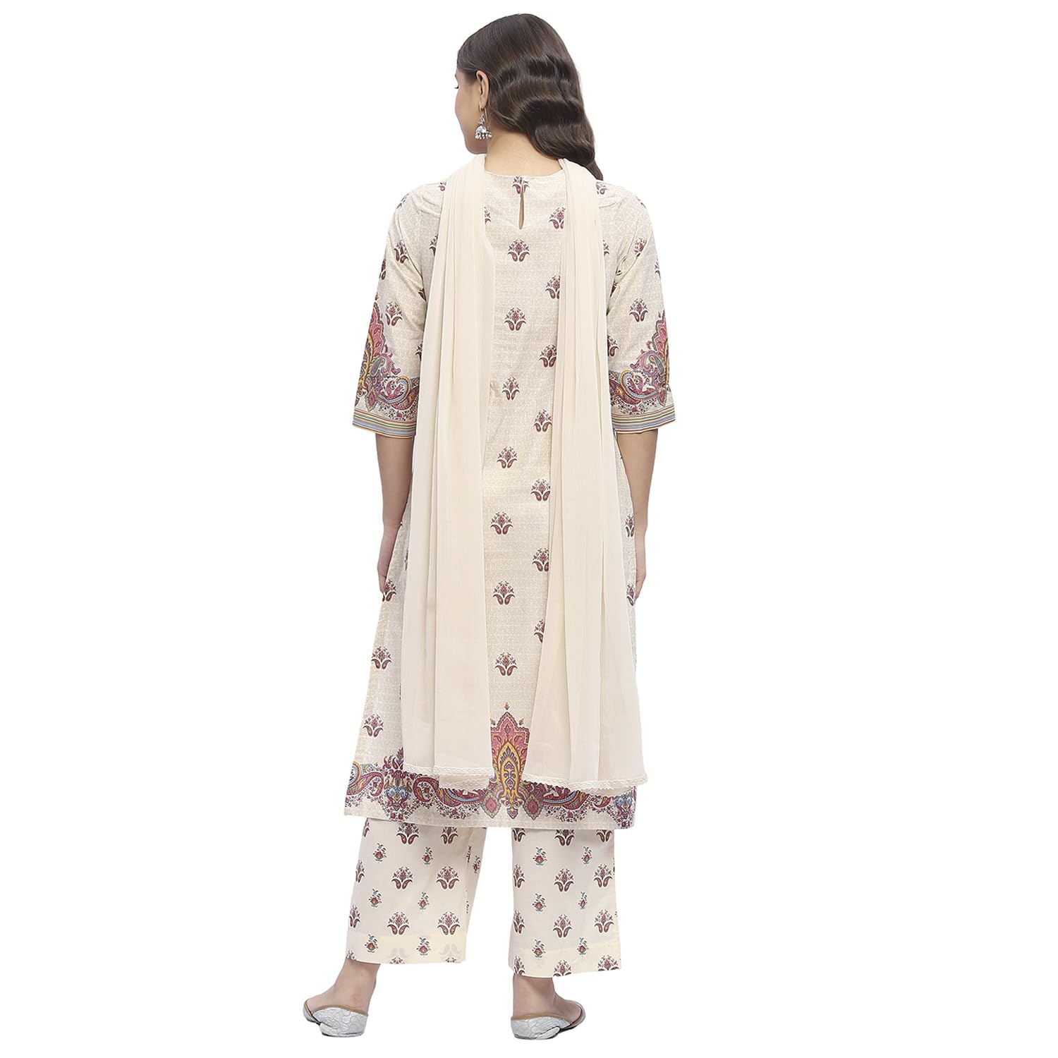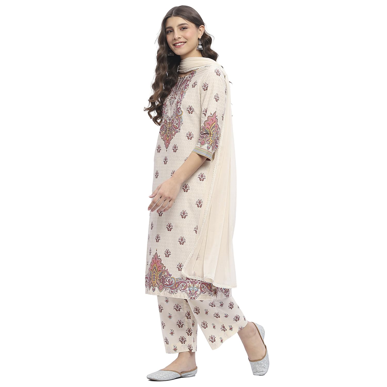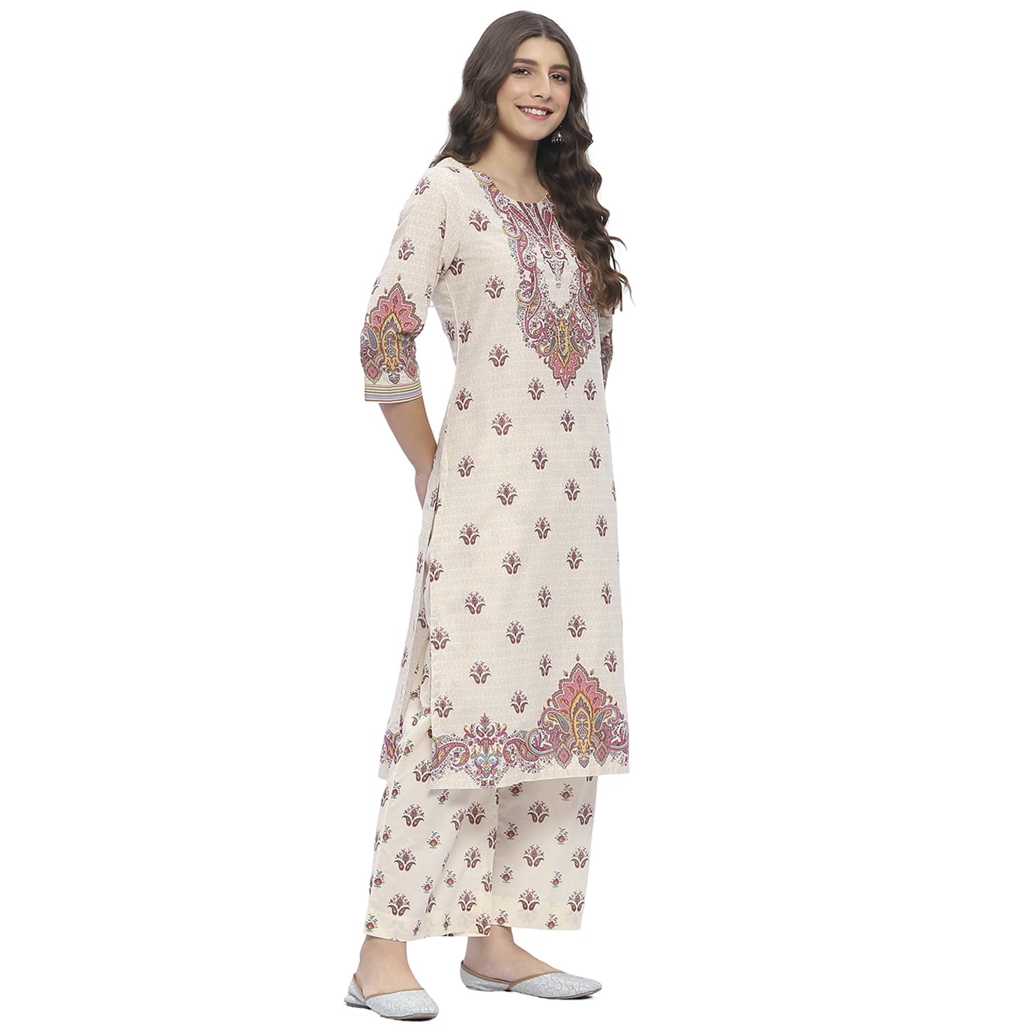 Biba Women’s Beige Pure Cotton Printed Straight Kurta Sets