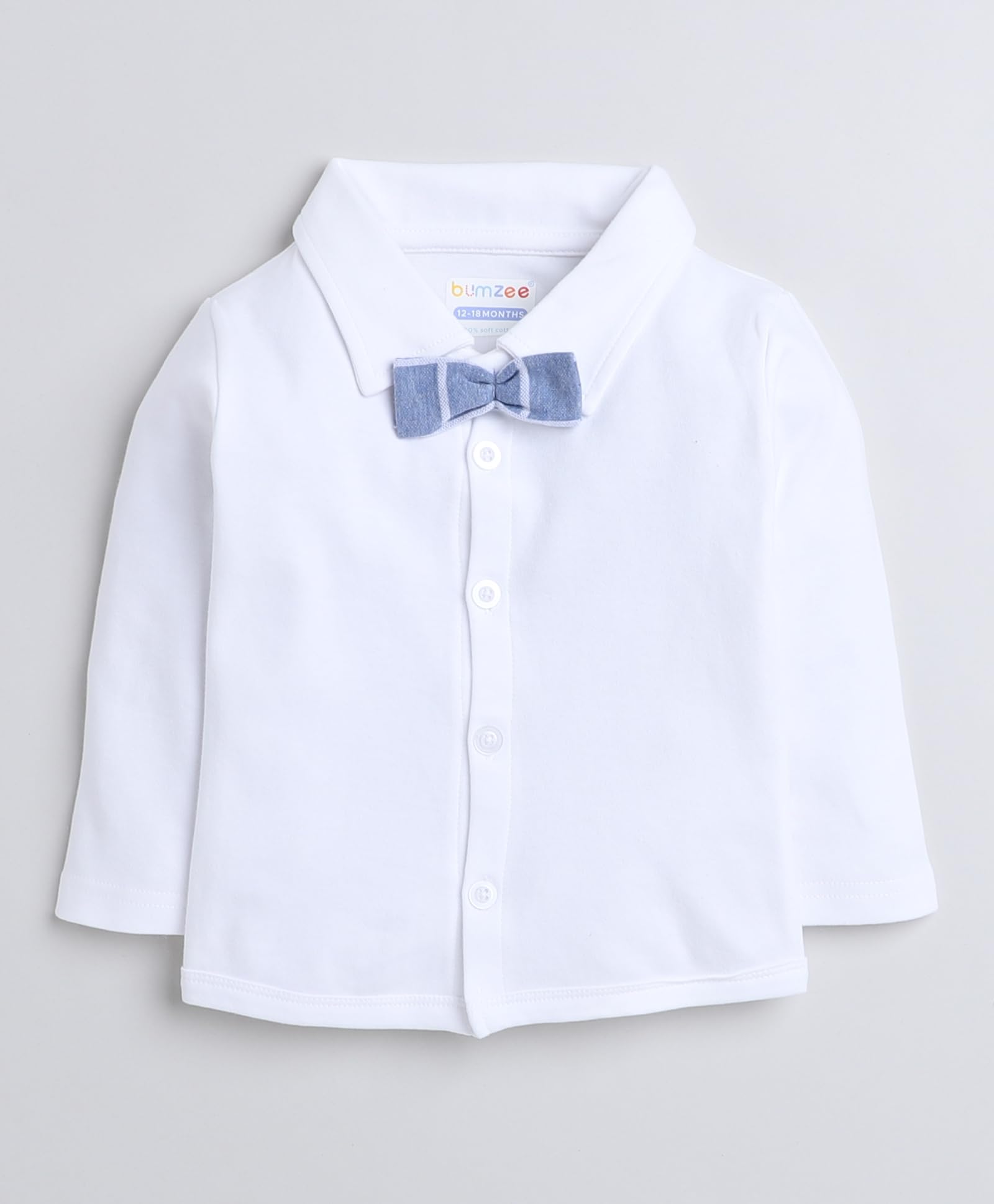 Need an instant outfit that’s ready to party? This formal set has been designed in a smart, simple way for baby boy by Bumzee. It connects the soft 100% cotton shirt, waistcoat and trousers, as well as the matching color bow tie. Your little baby will be best-dressed at his next event in this comfy (and cute) outfit! Our baby boy party clothes will have him ready to go exploring with friends, neighbors, and cousins, and still be family-photo ready. with smart trousers and full sleeved shirt, this coordinating set is finished with a smart waistcoat. whether your little boy wears these three pieces together or mixes them with other pieces, they are a versatile addition to his wardrobe. Note – The pocket in Waistcoat and pant is for show only.