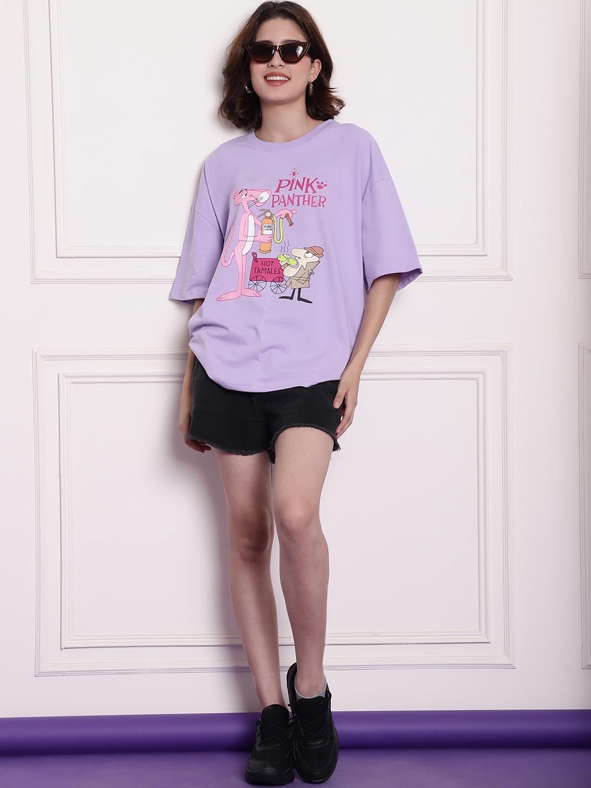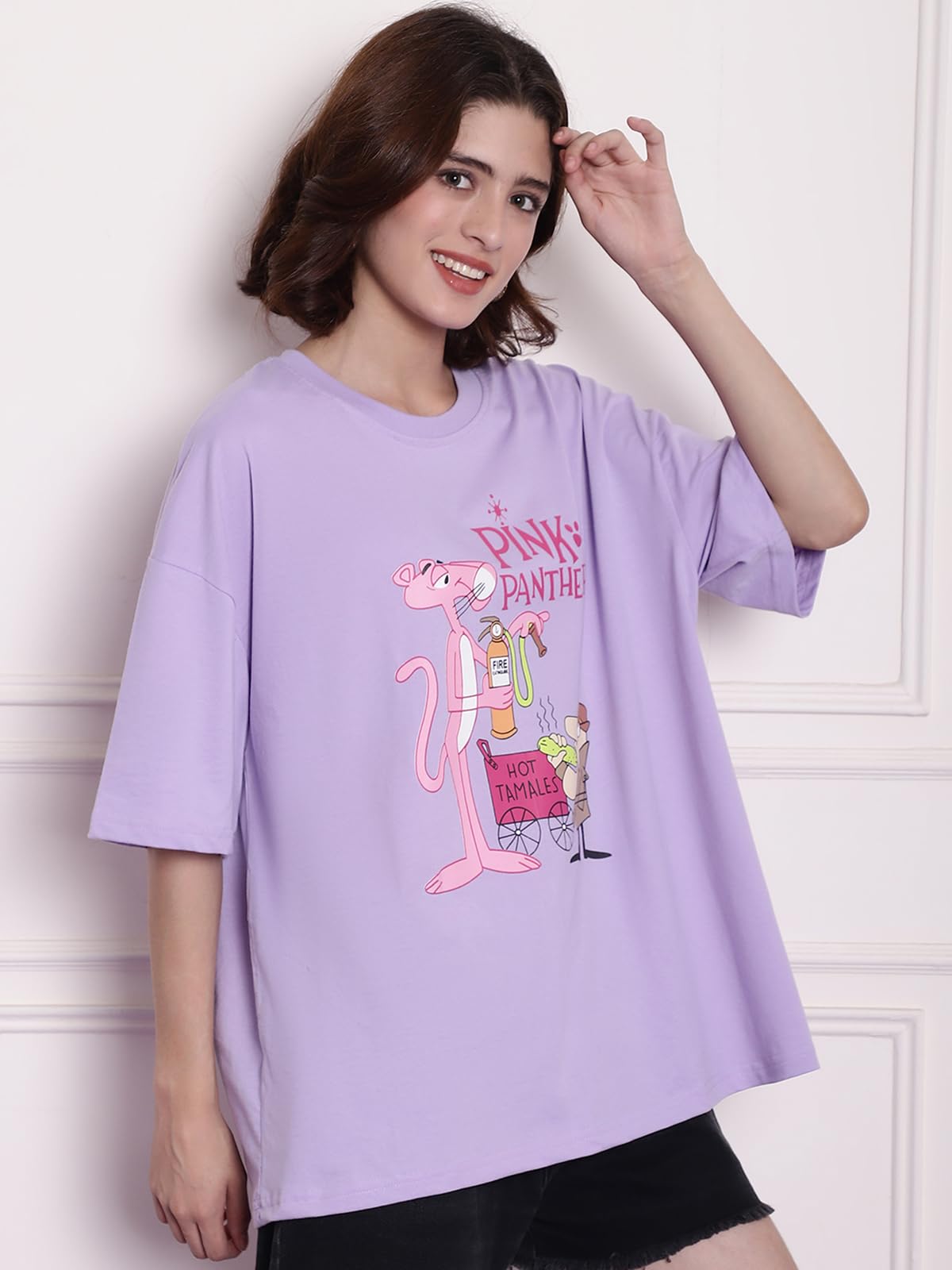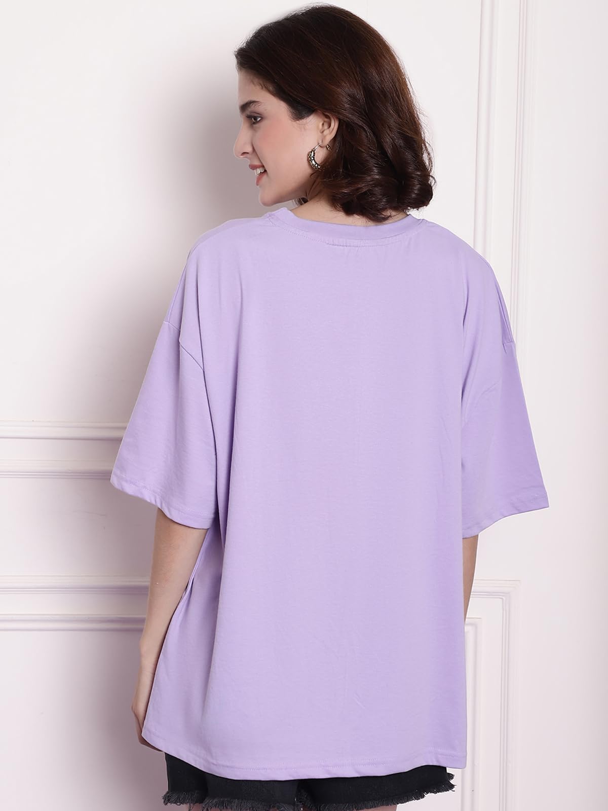 Fabflee Women’s Cotton Western Standard Length Tshirt (FB-Oversize-511_Purple_S)