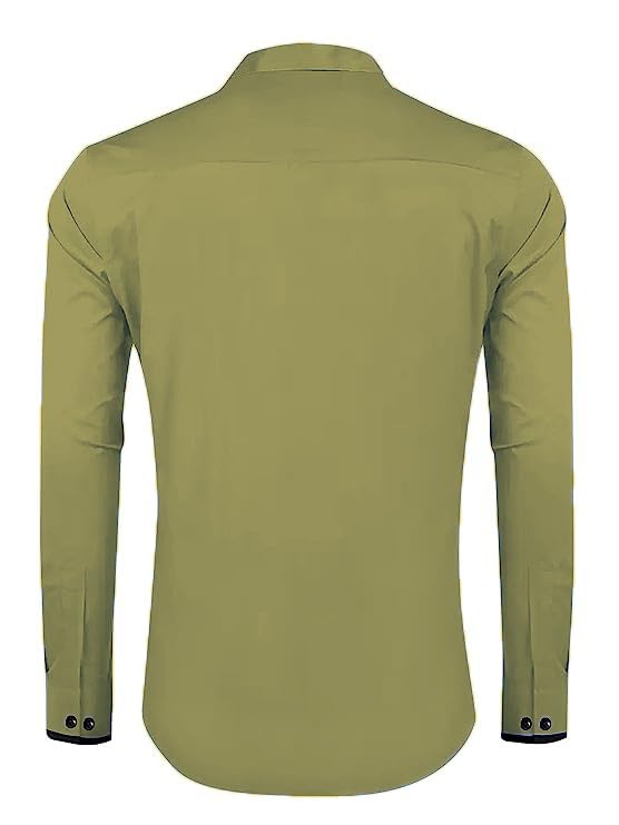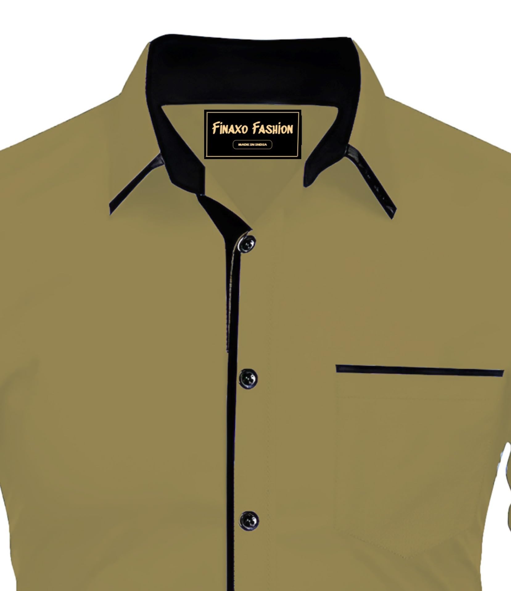 FINAXO FASHION Men’s Cotton Blend Shirt, Black with Red Trim, Long Sleeve, Regular Fit (in, Alpha, M, Khakhi)