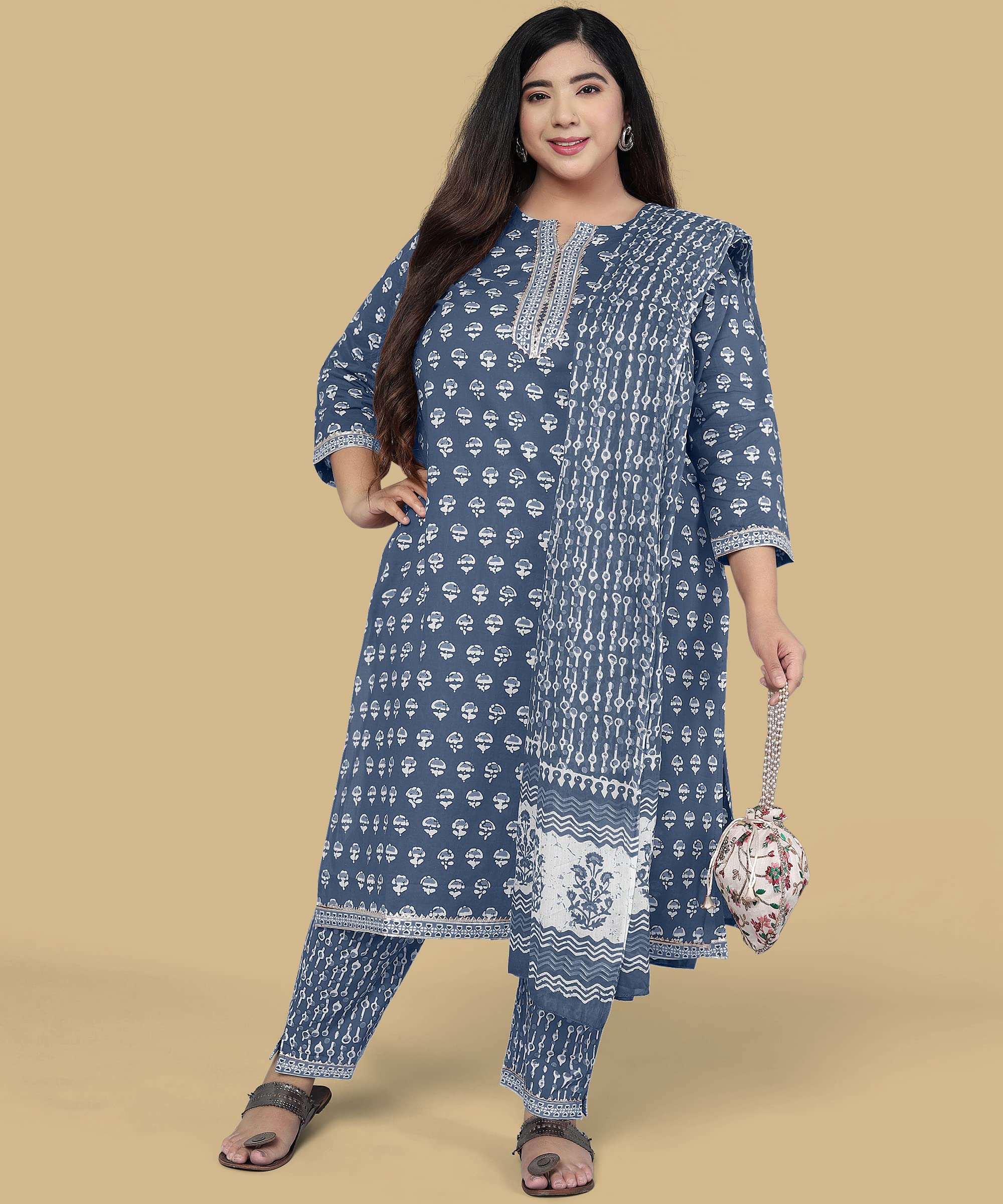 - Package Content :: 1 Straight Kurta + 1 Trouser Pants + 1 Dupatta (Promised Stitching and workmanship)