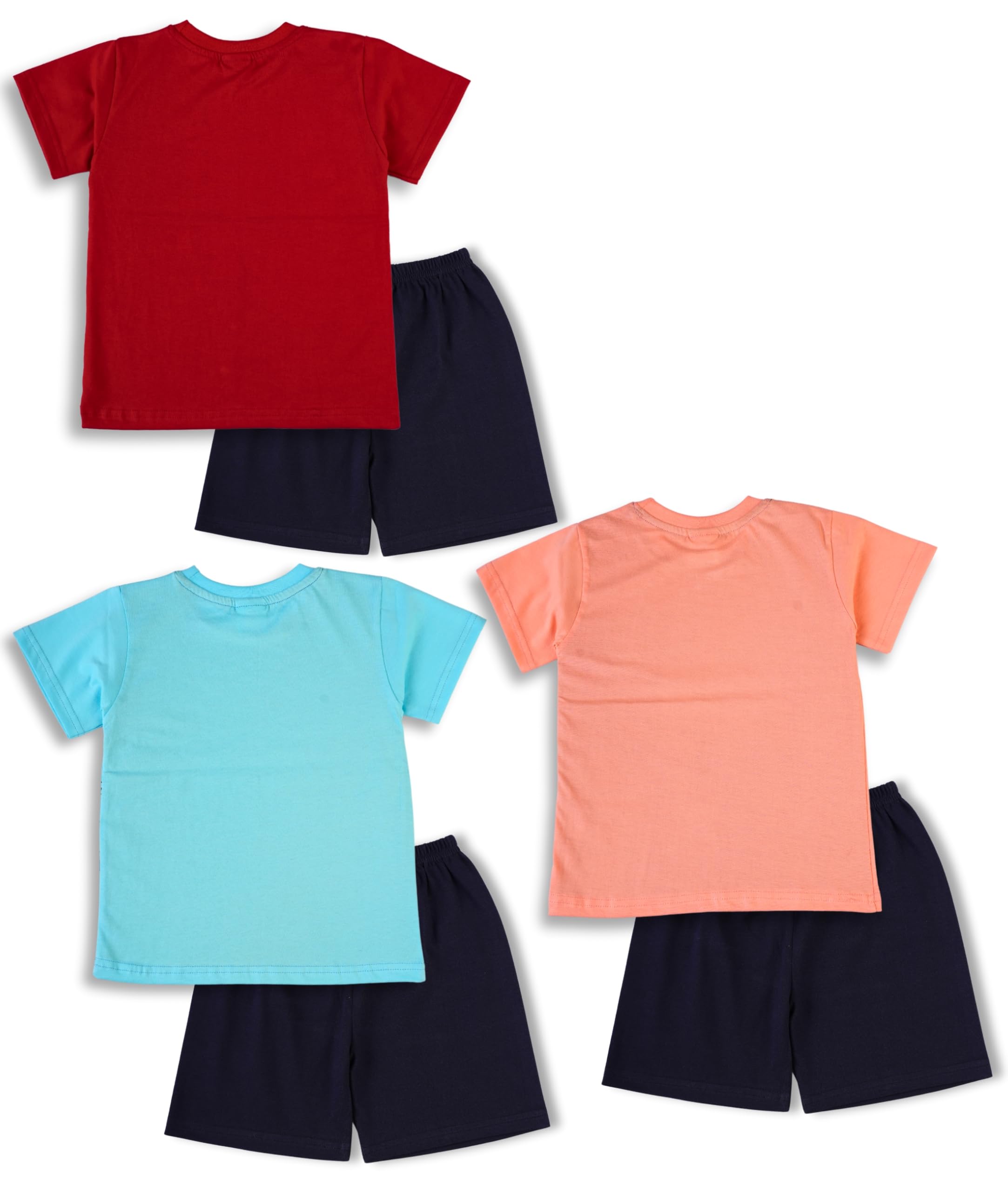 This t shirt and Shorts for kids is purely made of 100% cotton premium quality Bio-washed fabric material. T shirt and half pant for boy are very soft, smooth, breathable and comfortable for your kids to wear. Kids clothes set combo comes from combo pack of 3 Clothing set dress for kids. This Kids Boy Dress is mostly suitable for boy casual dress set combo as well as to wear as summer clothes for kids. These Kids Wear for Boys come from one pack which have 3 t-shirts and 3 stylish shorts. The Round neck half sleeve T-shirt and Trouser set are tailored with special care and proper measurement to acquire premium look for this Baby Boy Dress. Our Kids apparel cloth combo is more suitable for Baby boy and Baby girl Dress at an age gap in between 1 year to 6 years Kids. In this Kids boy dress, the waist elastic band in lower give more comfortable for your child to play all day long. Buy Our product and give surprise to your Kids and decorate your kids wardrobe with our products.