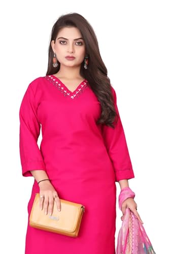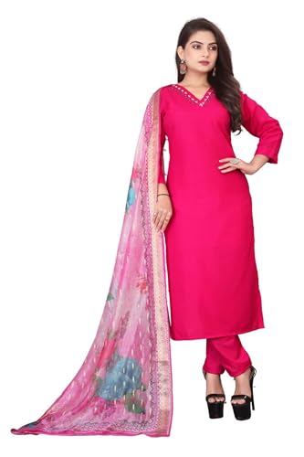 RADHEZ Women’s Rayon Kurta with Dupatta Set Elegant Embroidered Kurti & Printed Dupatta Soft Fabric Daily & Festive Suit Ethnic Indian Dress Set for Women (Pink,M)