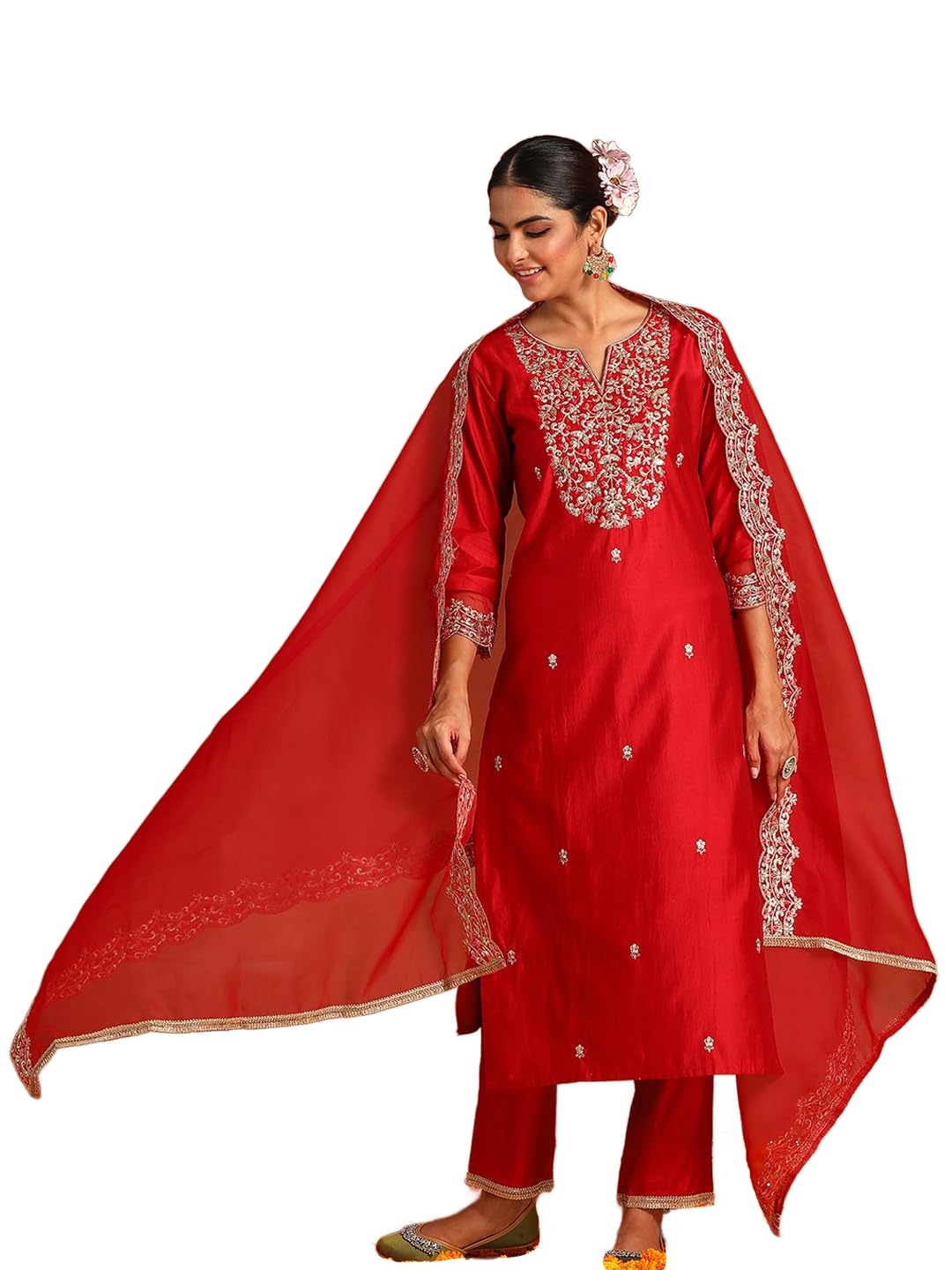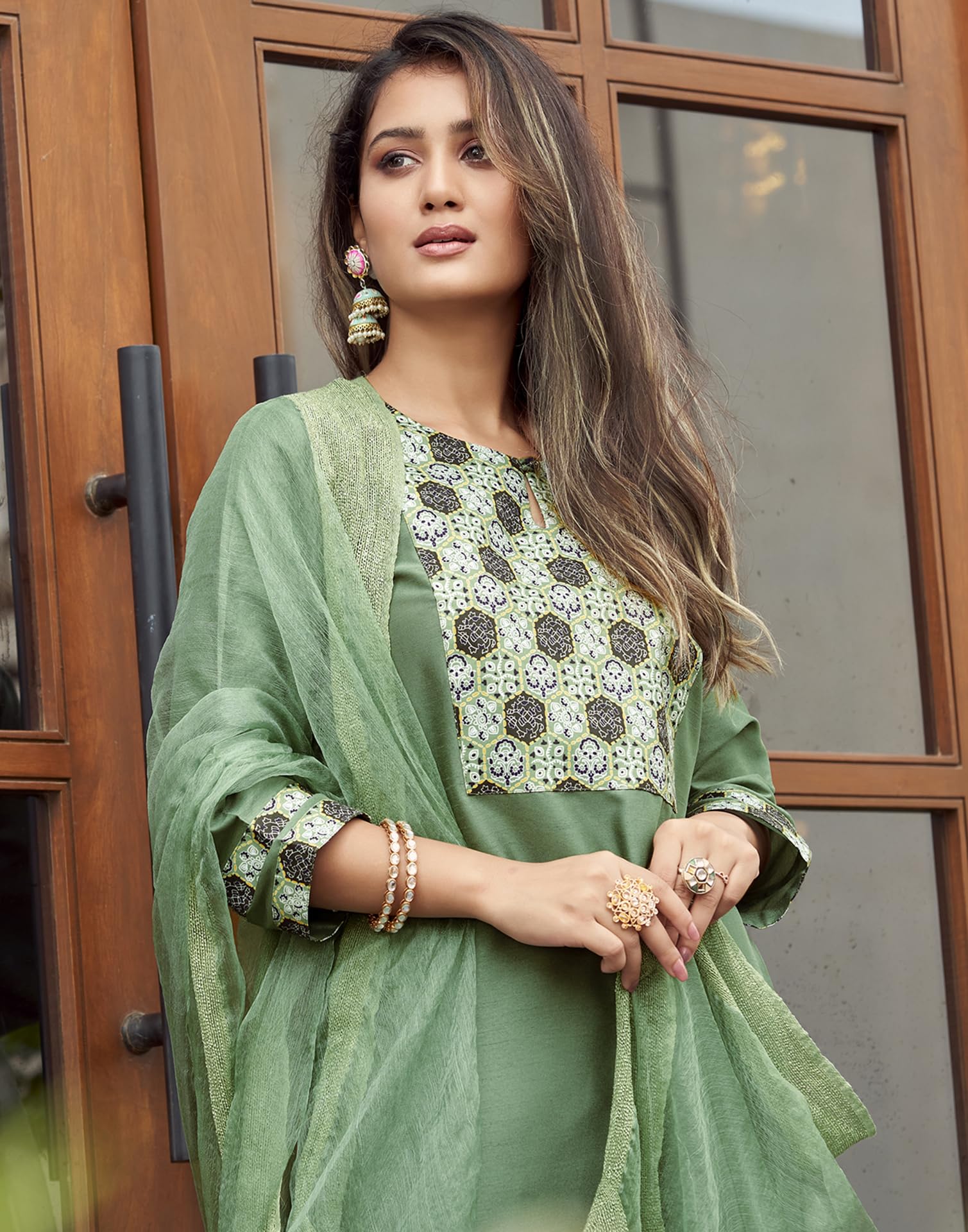 SIRIL Women’s Art Silk Printed Straight Kurta Pant with Dupatta Set (103KBD1124-XL_Green)