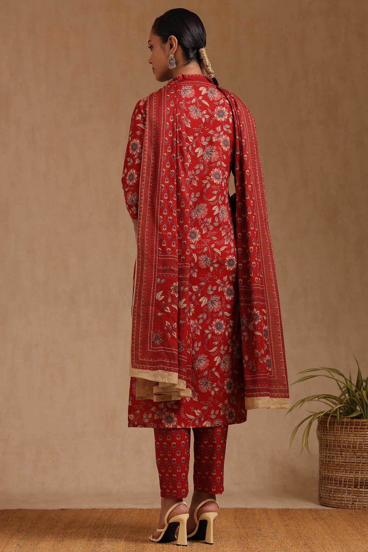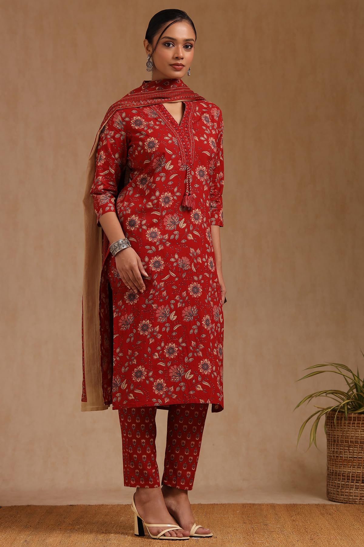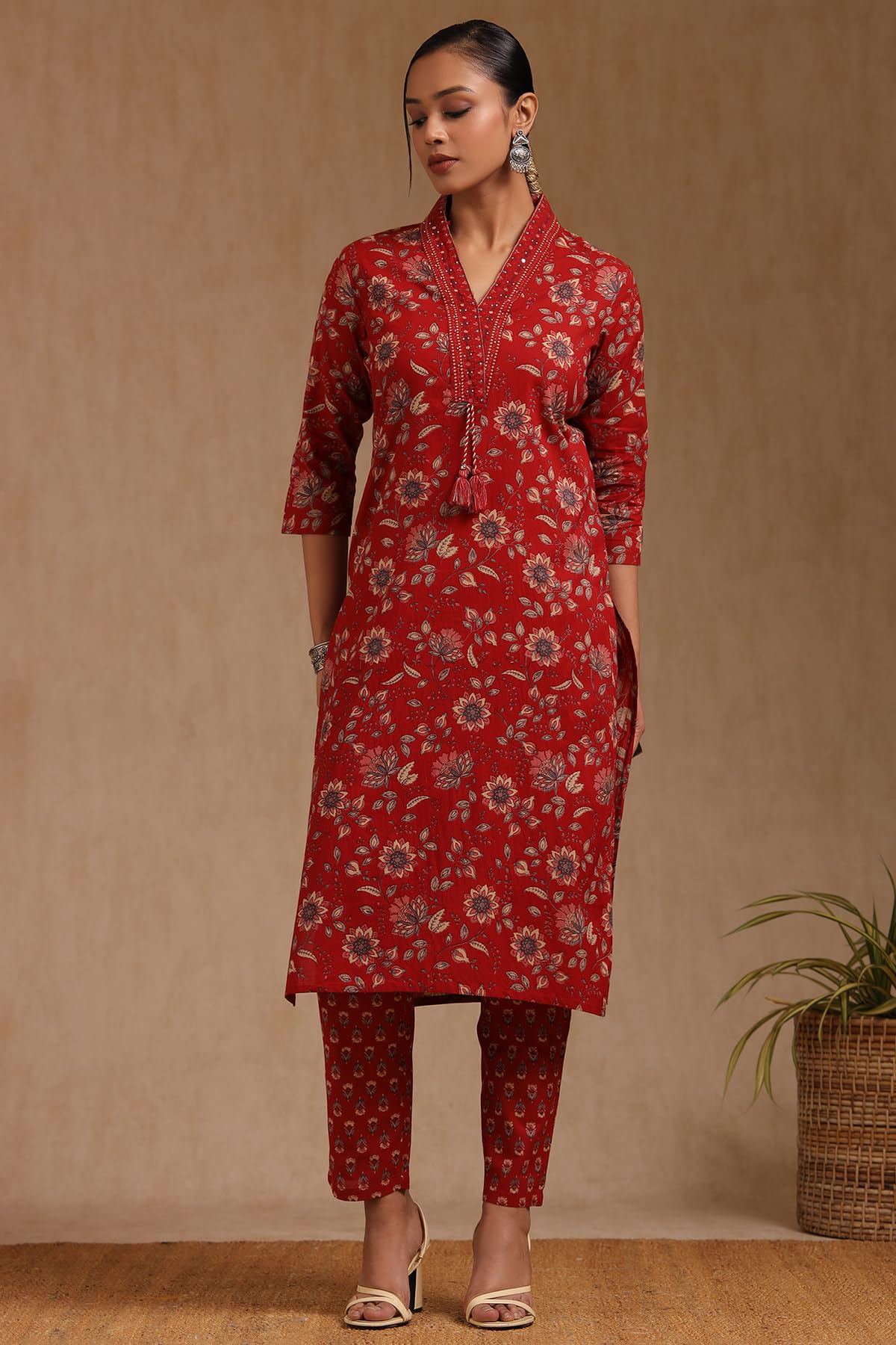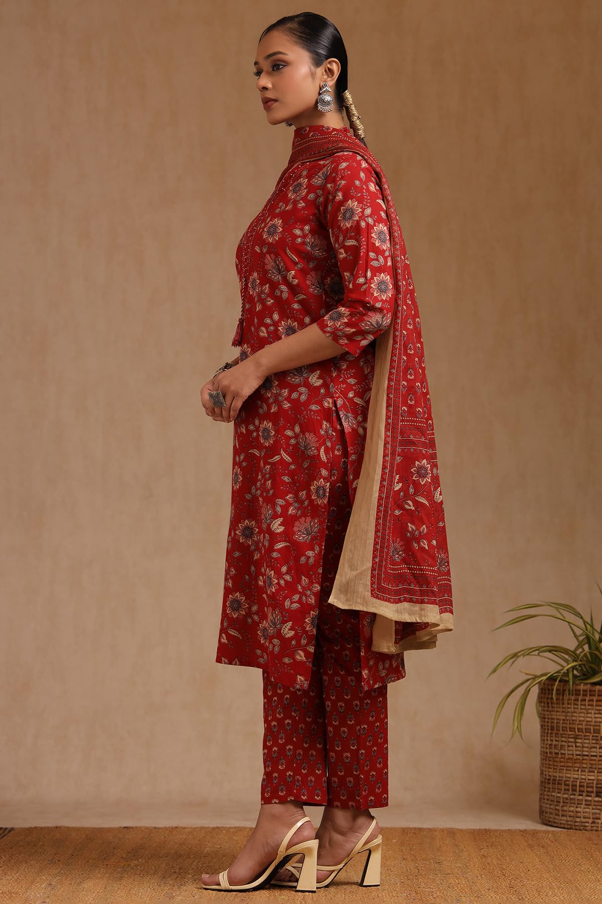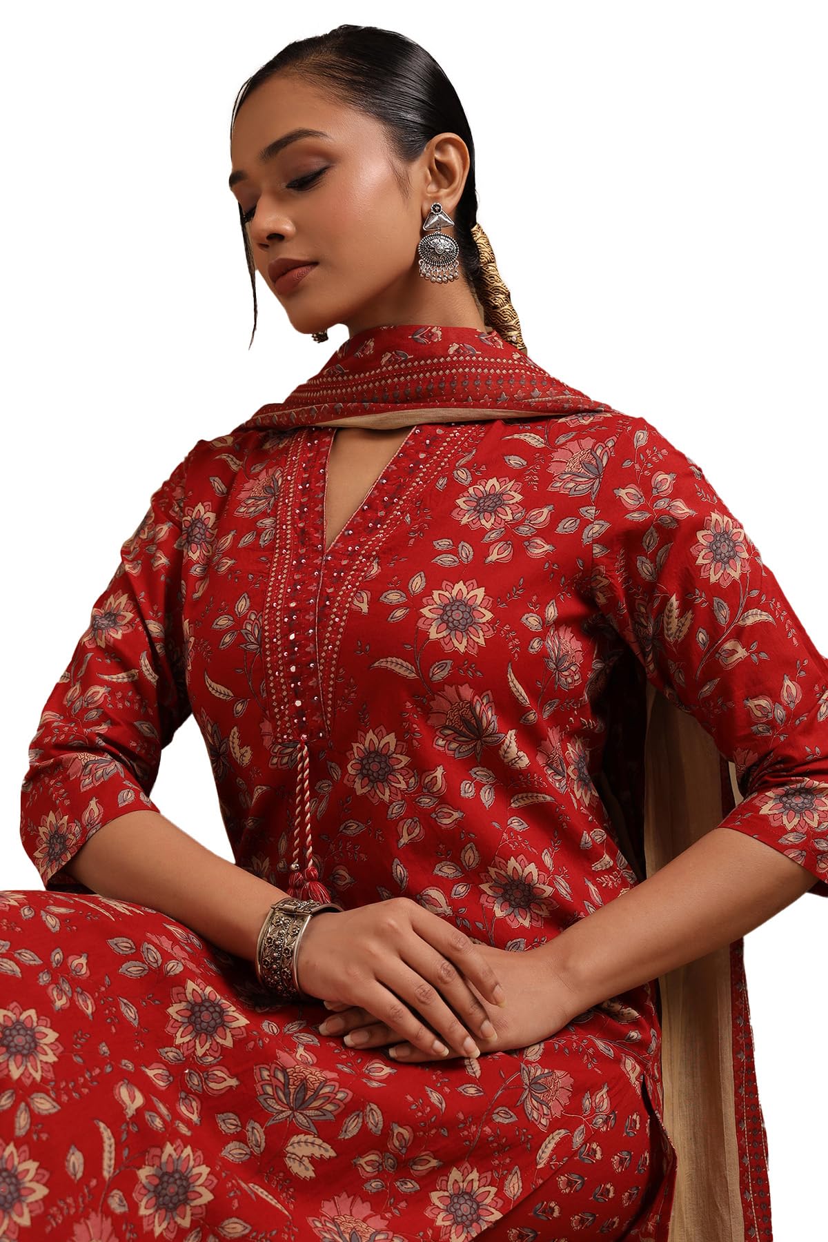Soch Womens Cotton Floral Print Suit Set With Faux Mirror