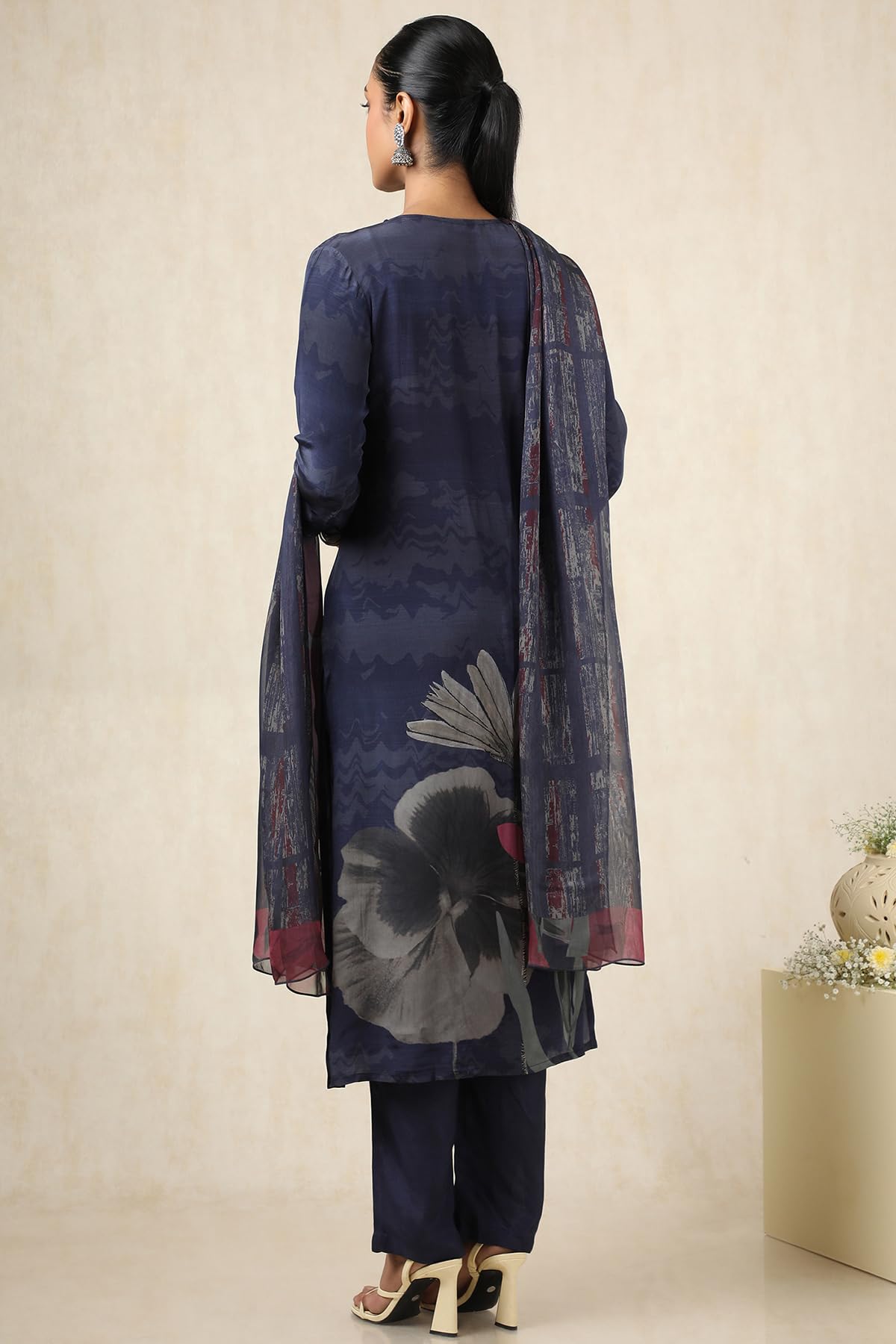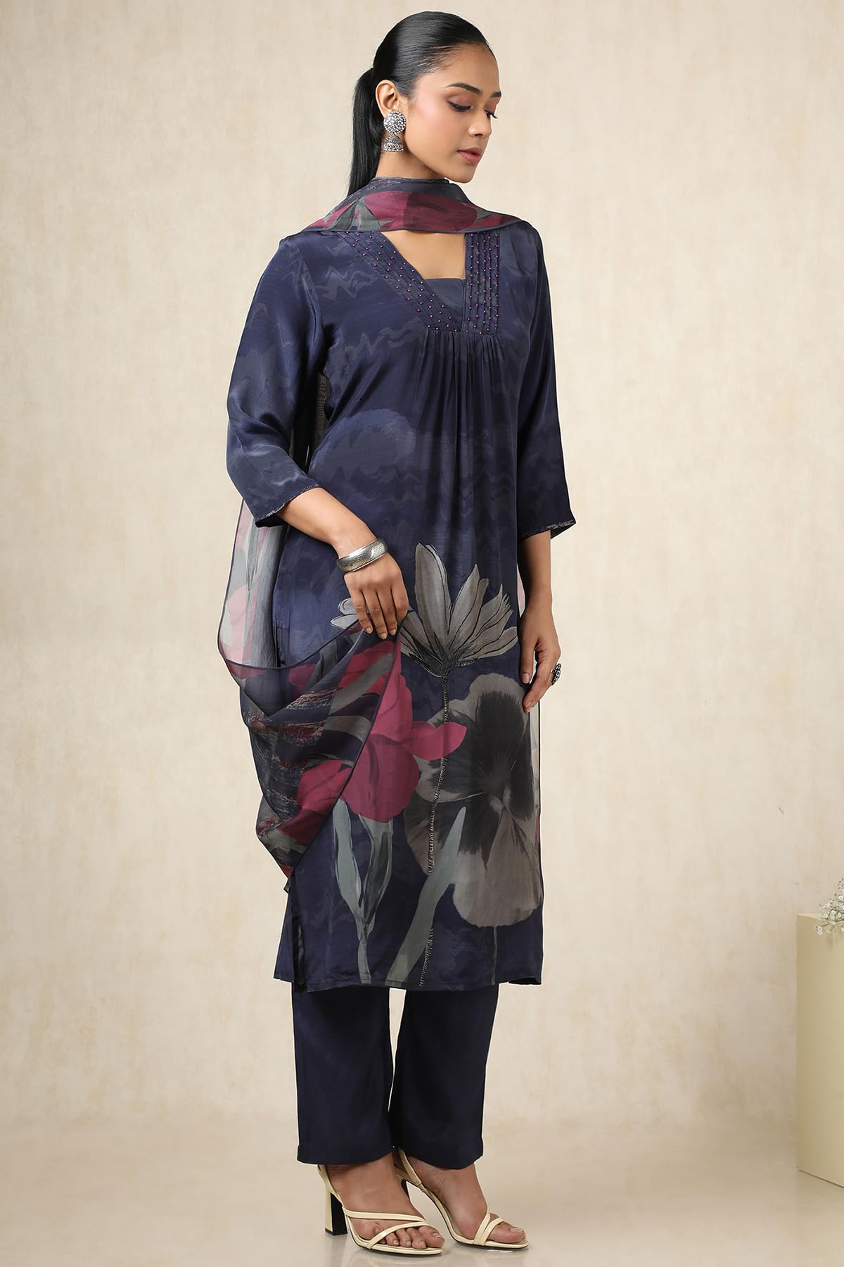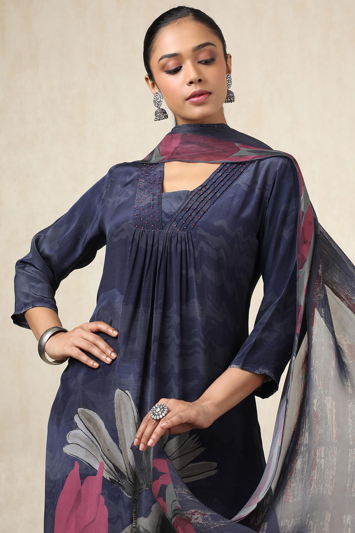 Soch Womens Navy Blue Crepe Botanical Chudidar Set With Beads