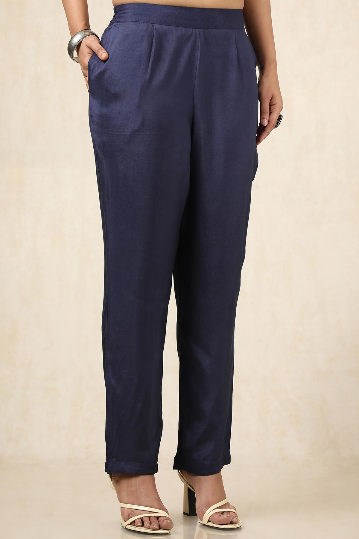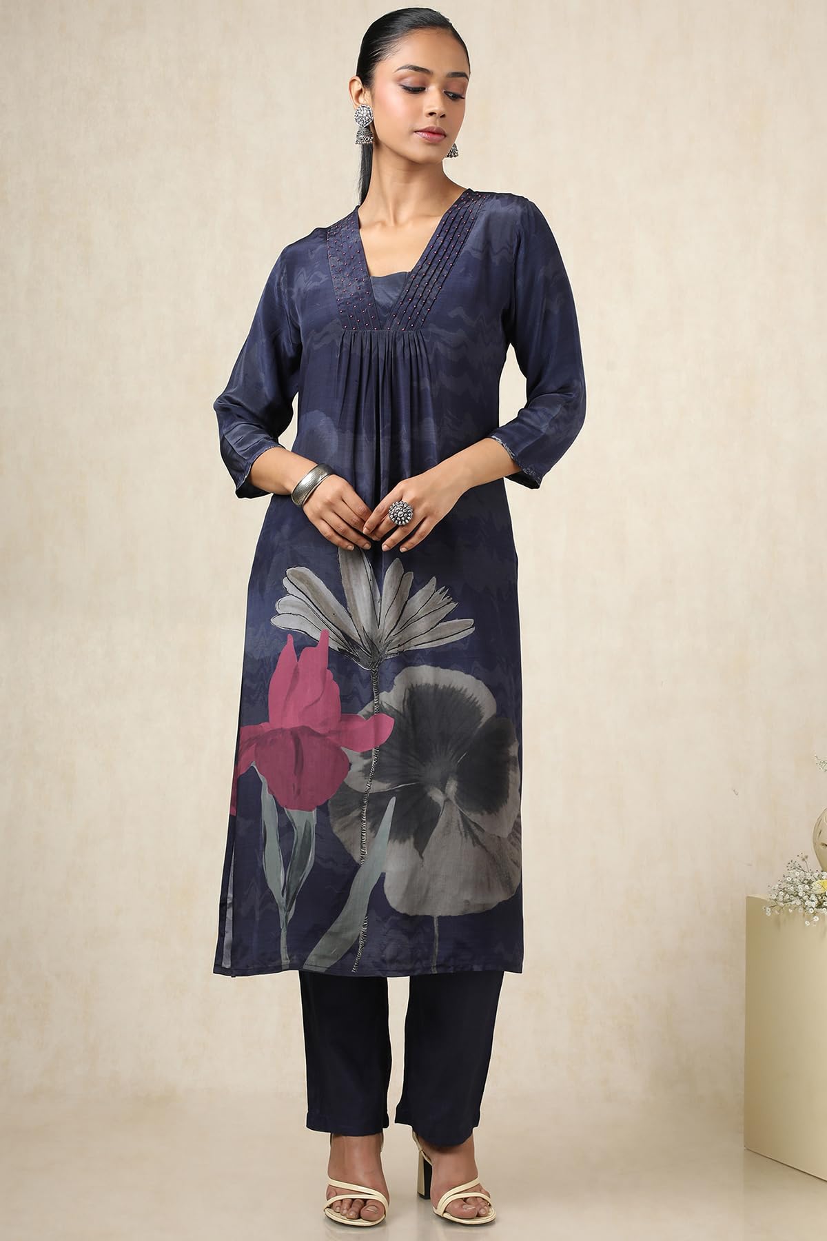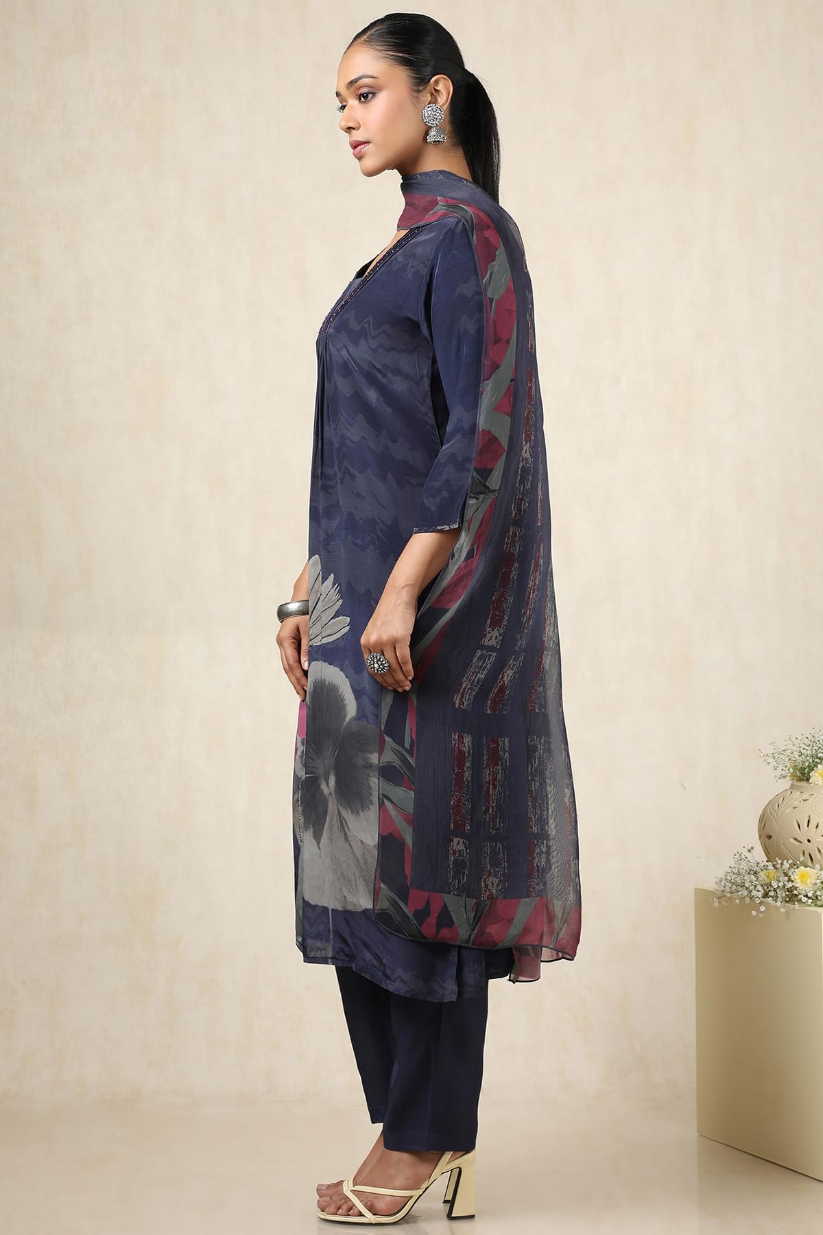 Soch Womens Navy Blue Crepe Botanical Chudidar Set With Beads