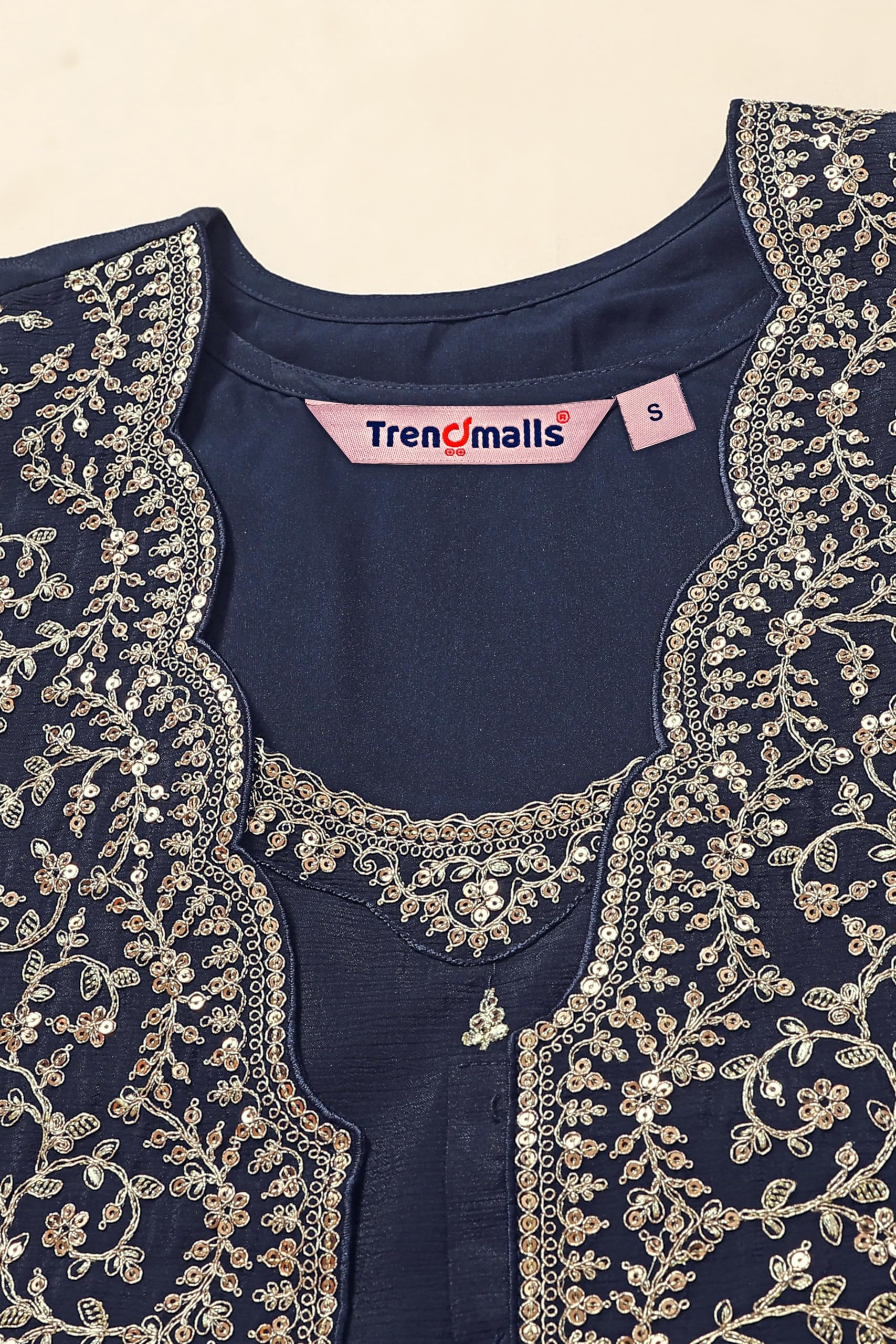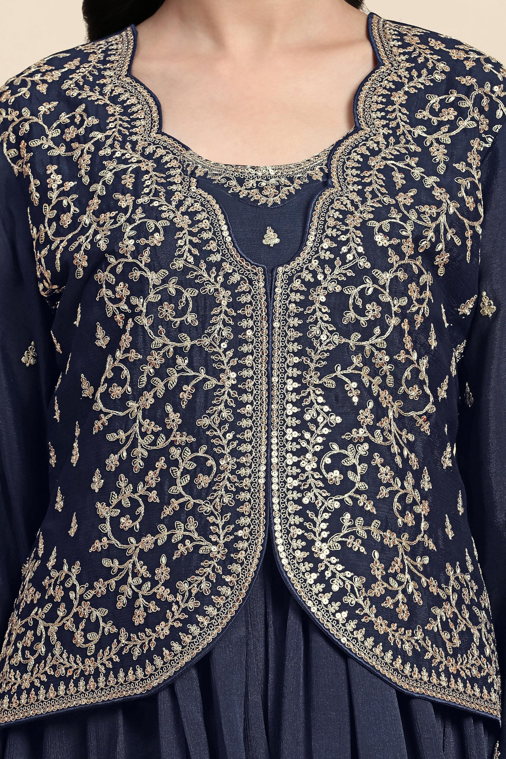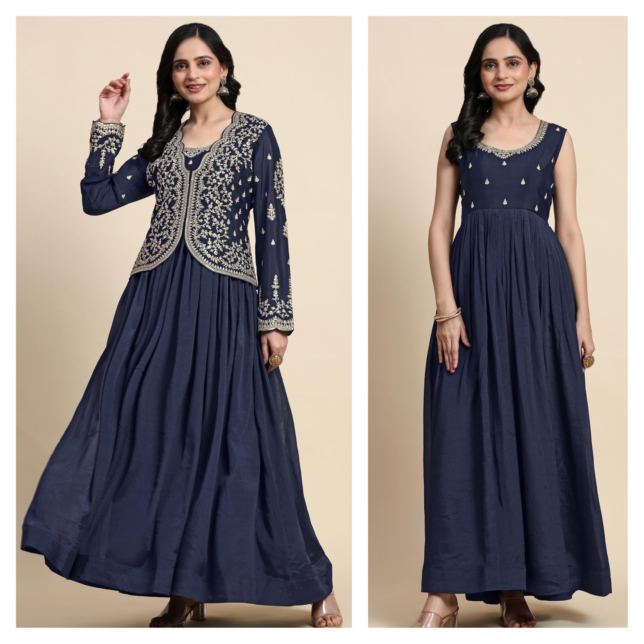 TRENDMALLS Women’s Silk Blend Embroidery Shrug Pleated Kurta Pant Set with Dupatta (G250-Blue-XXL)