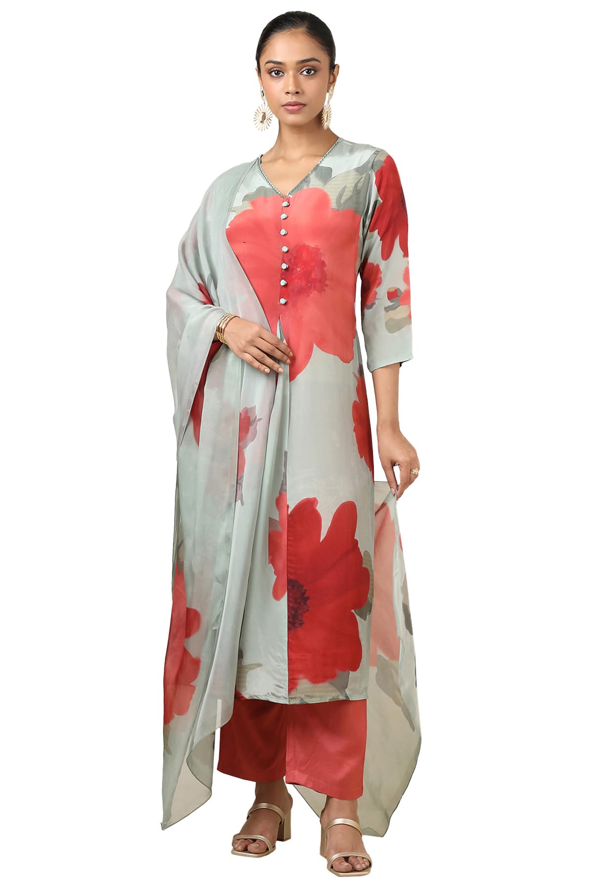 Brand: SochColor: Sap GreenFeatures: Pattern: BotanicalFabric: CrepePackage Contains: 1 Kurta, 1 Pant, 1 DupattaPackage Dimensions: 30x300x300Details: Description Soch Womens Sap Green Crepe Botanical Chudidar Set